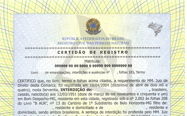A Certidão de Interdição é o documento que atesta a falta de capacidade da pessoa para gerir seus negócios e atos decorrentes da vida civil.