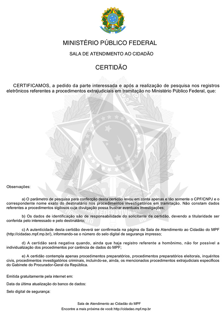 O QUE CONTERÁ NUMA CERTIDÃO NEGATIVA DO MPF?