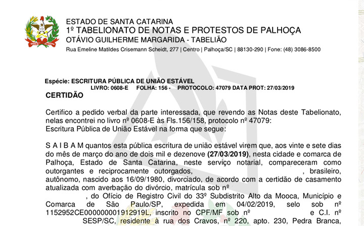 Vale ressaltar que todos os dados contidos nestes documentos ficam arquivadas no cartório de notas para conferência a qualquer momento.